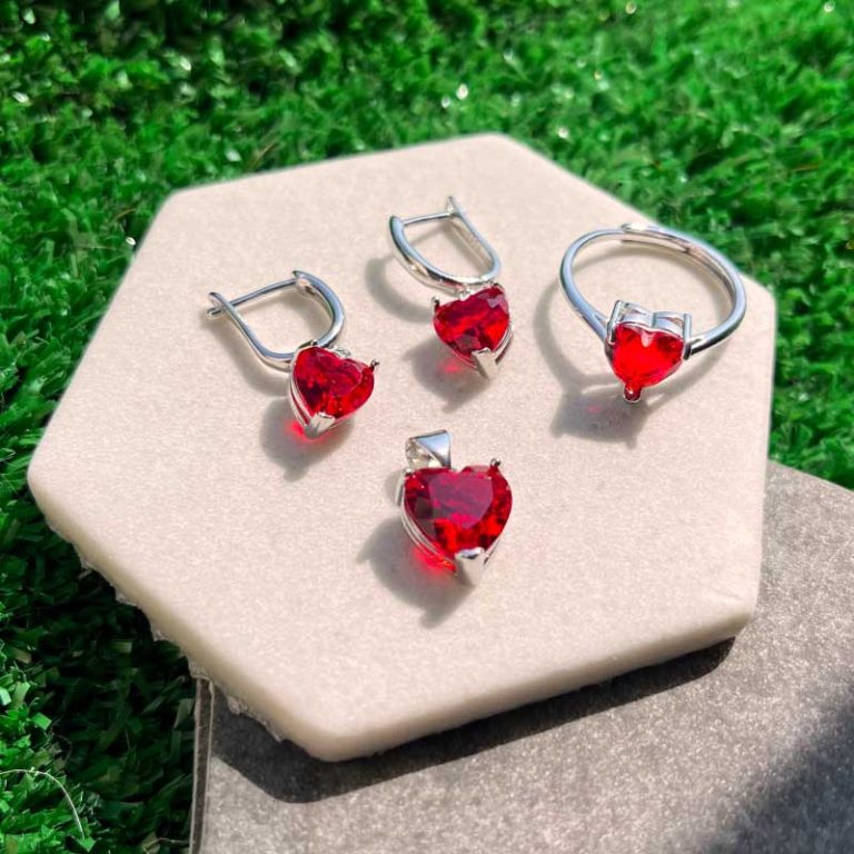 Demuestra tu amor con este hermoso Set de Corazón Rojo chapado en Plata 925